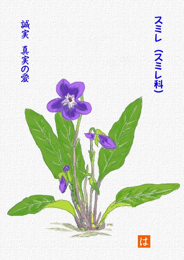 絵画同好会の教材を手本にして、誕生花3月20日のスミレ(スミレ科)を描いたものです。