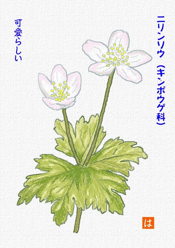 絵画同好会の教材を手本にして、誕生花4月4日のニリンソウ(キンポウゲ科)を描いたものです。